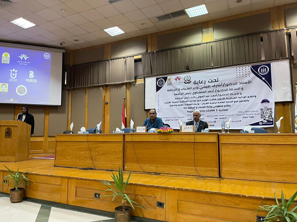 تحت رعاية الدكتور أحمد المنشاوي القائم بعمل رئيس جامعة أسيوط، شهدت الجامعة انطلاق فاعلية Learn 3 في إطار مبادرة "شباب يدير شباب" YLY وذلك تحت رعاية الدكتور أشرف صبحي وزير الشباب والرياضة الذي أطلق المبادرة منذ توليه الوزارة عام 2018م، وبحضور الدكتور أحمد عبد المولى القائم بعمل نائب رئيس الجامعة لشئون التعليم والطلاب، والدكتور أحمد شريت مدير الإدارة العامة لرعاية الشباب بالجامعة والأستاذ محمد سيد مدير وحدة العلاقات العامة والإعلام بالإدارة، والطالبة روفيدا جمال مسئول متطوعي وزارة الشباب، ومجموعة من متطوعي وزارة الشباب بالمبادرة، وحشد من طلاب الجامعة.