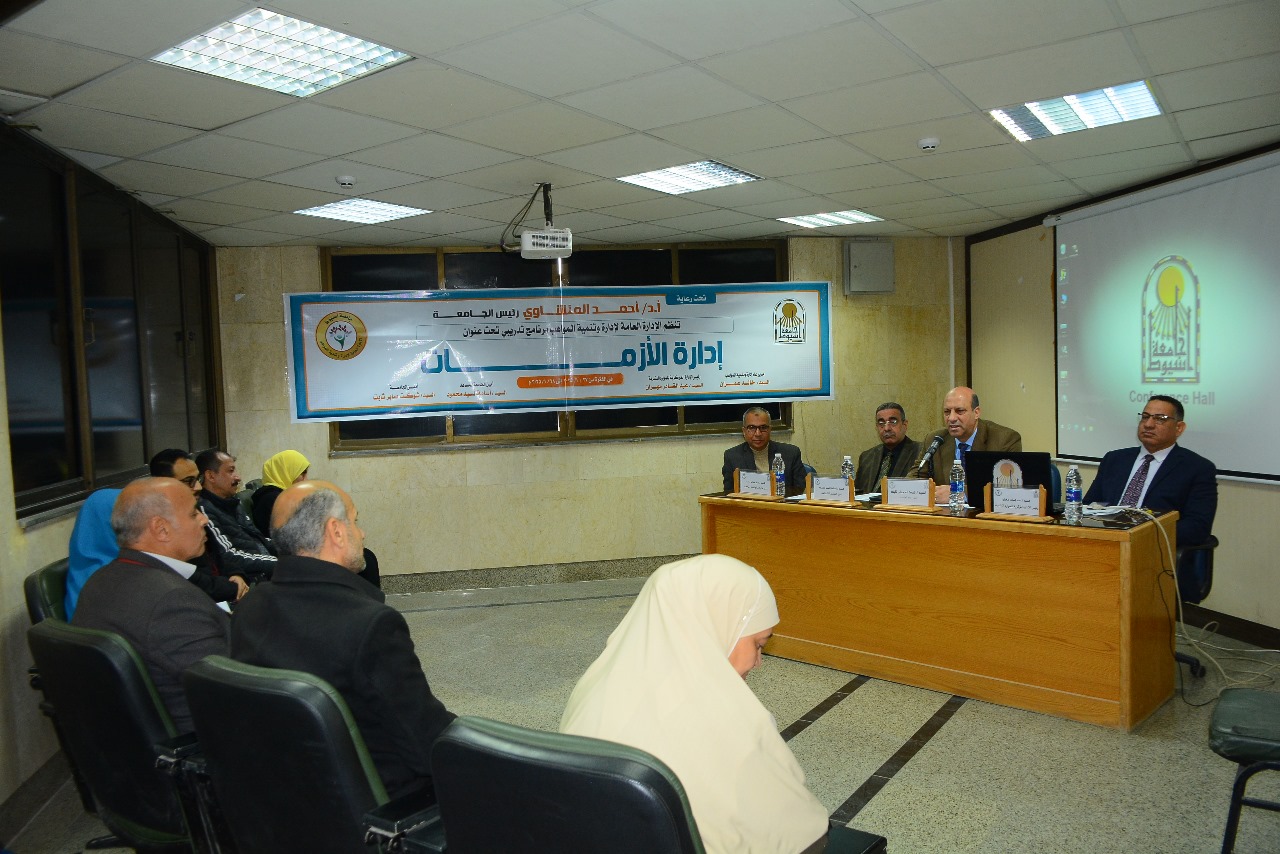 تحت رعاية الدكتور أحمد المنشاوي رئيس جامعة أسيوط؛ نظّمت الإدارة العامة لإدارة وتنمية المواهب؛ فعاليات البرنامج التدريبي بعنوان: "إدارة الأزمات"، اليوم الإثنين، تحت إشراف الأستاذ شوكت صابر أمين عام الجامعة، وذلك بقاعة المناقشات بالدور الأول بالمبنى الإداري بالجامعة.