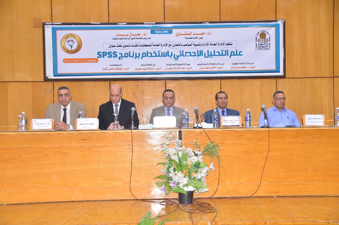 نظّمت الإدارة العامة لتنمية المواهب والإدارة العامة للمكتبات بجامعة أسيوط، تحت رعاية الدكتور أحمد المنشاوي رئيس الجامعة، لقاءً تعريفيًا بعنوان "علم التحليل الإحصائي باستخدام برنامج SPSS"، بقاعة المناقشات بالمبنى الإداري، تحت إشراف الدكتور جمال بدر نائب رئيس الجامعة لشئون الدراسات العليا والبحوث، والأستاذ شوكت صابر أمين عام الجامعة.