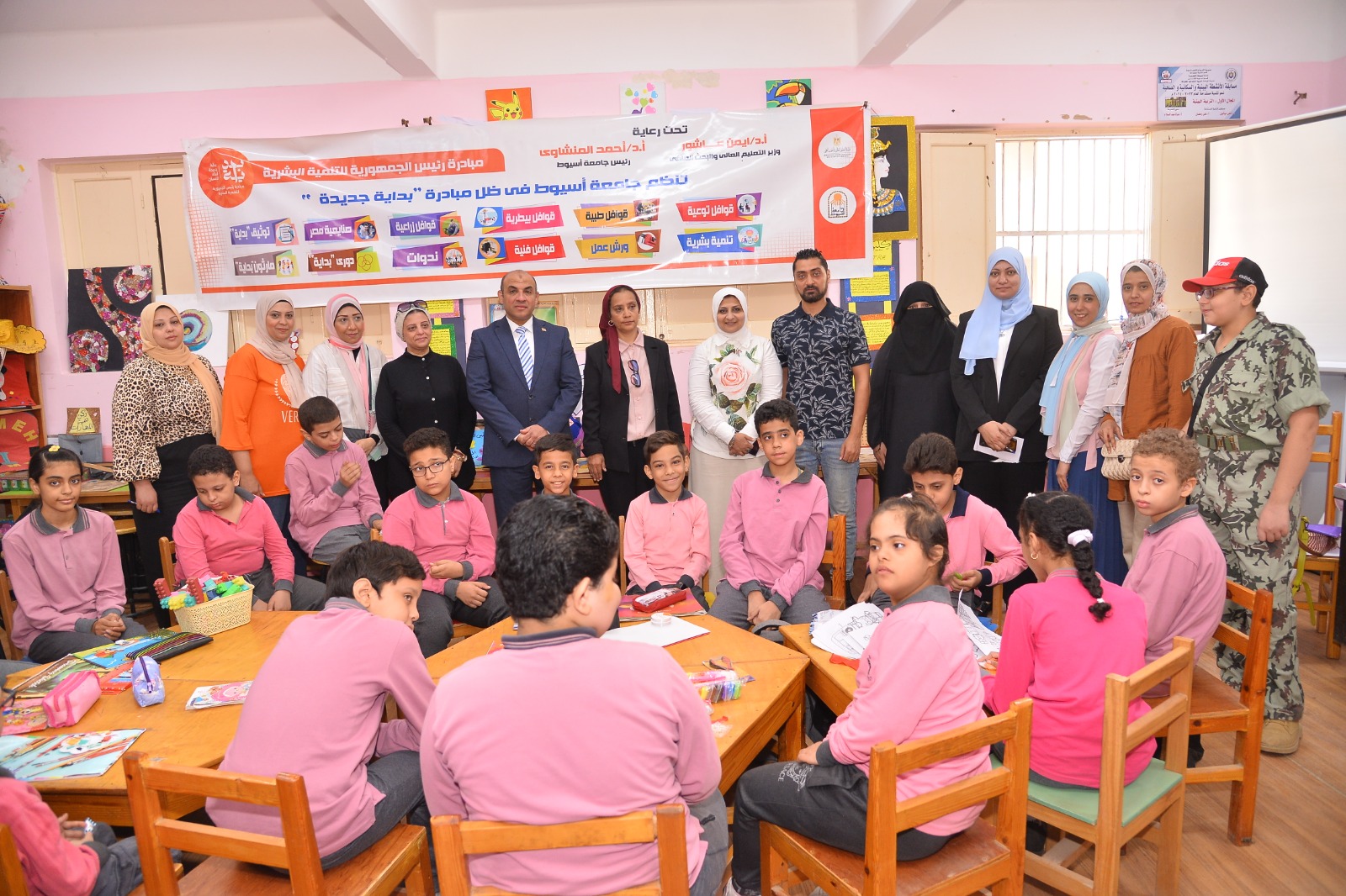 فى إطار مشاركة جامعة أسيوط فى المبادرة الرئاسية "بداية جديدة؛ لبناء الإنسان" عقد قطاع خدمة المجتمع وتنمية البيئة؛ ورشة عمل فنية؛ للطلاب ذوي الهمم؛ بمدرسة الوحدة العربية بأسيوط؛ وذلك تحت إشراف: الدكتور محمود عبدالعليم نائب رئيس الجامعة لشئون خدمة المجتمع وتنمية البيئة.