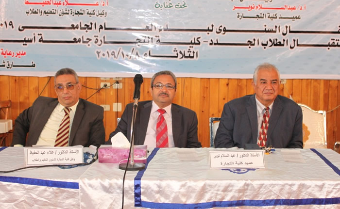 جاء ذلك فى إطار رعايته للاحتفال السنوي لبدء العام الجامعي 2019-2020 واستقبال الطلاب الجدد بكلية التجارة ،والتي نظمته إدارة الكلية، تحت إشرافه ، والدكتور شحاتة غريب نائبه لشئون التعليم و الطلاب ، وبحضور الدكتور عبد السلام نوير عميد كلية التجارة ، و الدكتور علاء عبد الحفيظ وكيل الكلية لشئون التعليم والطلاب ، و الدكتور عبد الرحيم خليل وكيل الكلية لشئون الدراسات العليا و البحوث،و الأستاذ طارق شريت مدير رعاية الشباب و ممثلي الإدارة ، و لفيف من أعضاء هيئة التدريس و معاونيهم بالكلية و حشد كبير من الطلاب الجدد و القدامى .