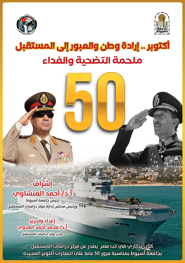أعلن الدكتور أحمد المنشاوي رئيس جامعة أسيوط عن صدور كتاب "أكتوبر إرادة وطن والعبور إلى المستقبل .. ملحمة التضحية والفداء" ، في ضوء احتفالات جامعة أسيوط باليوبيل الذهبي لحرب أكتوبر المجيدة؛ ليكون مرشدًاً وحجة للدلالة على تلاحم القوات المسلحة المصرية مع شعب مصر الأصيل، وكذلك مع أمتنا العربية، أعد الكتابَ الدكتور محمد أحمد العدوي مدير مركز دراسات المستقبل، والذي جاء في إطار حرص جامعة أسيوط على ترسيخ روح الانتماء والاعتزاز بالوطن، وأن يدرك طلاب الجامعة معنى كلمة أن الجيش والشعب يدٌ واحدة، وأن مصر تحتل مكانة متميزة في قلوب شعوب الأمة العربية وقاداتها.