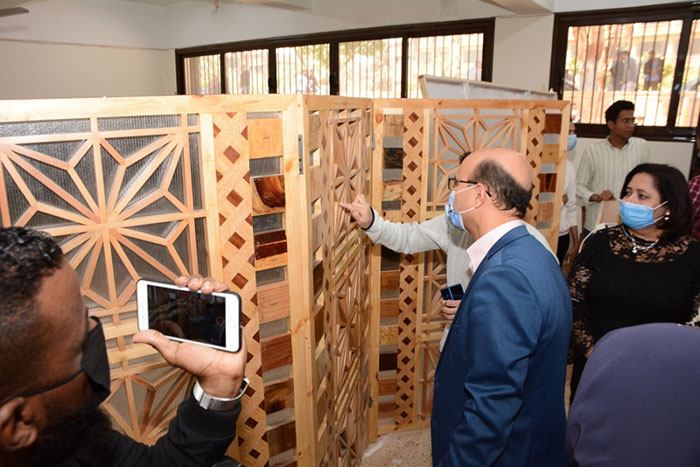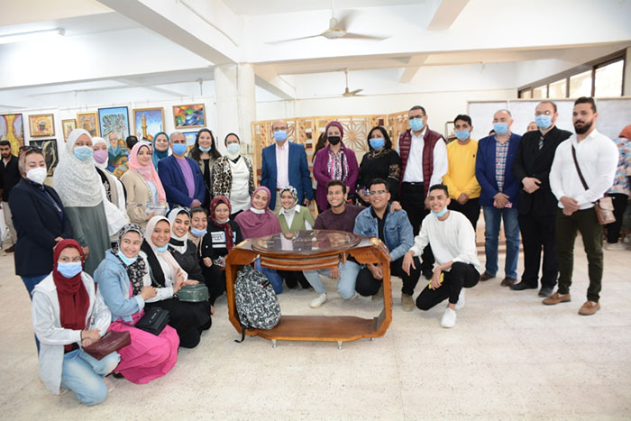 وفي هذا الشأن افتتح الدكتور أحمد المنشاوي نائب رئيس الجامعة لشئون الدراسات العليا والبحوث والمشرف على كلية الفنون الجميلة بالجامعة أعمال المعرض الفني الذي نظمه قطاع خدمة المجتمع وتنمية البيئة بالجامعة بعنوان " إبداعات فنية 2021 " , والذي شهد حضور الدكتورة مها غانم نائبه لشئون خدمة المجتمع وتنمية البيئة , والدكتورة سحر بطرس نجيب وكيل الكلية لشئون خدمة البيئة وتنمية المجتمع , والدكتور محمد حلمي الحفناوي وكيل الكلية للدراسات العليا والبحوث , والدكتور محمد عبد الحكيم وكيل الكلية لشئون التعليم والطلاب , والدكتور محمد ثابت رئيس قسم التصوير , والدكتورة إيناس ضاحي رئيس قسم الديكور , والدكتور محمد عبد الباسط رئيس قسم الجرافيك , والدكتورة نها مفتي مدرس قسم الجرافيك , والدكتورة أمل عبد الوارث المدرس بقسم العمارة , والأستاذ مخلص فاروق أمين الكلية , ولفيف من أعضاء هيئة التدريس ومعاونيهم وعدد من الطلاب المشاركين بالكلية .