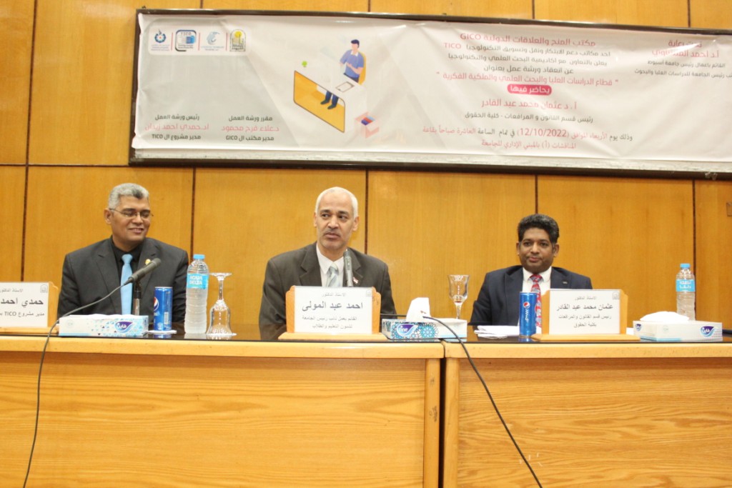 جاء ذلك تعقيبا على افتتاح ورشة العمل الثانية تحت عنوان "قطاع الدراسات العليا والبحث العلمى والملكية الفكرية"التى تعقد ضمن سلسلة ورش العمل الذى يعقدها مكتب الملكية الفكرية وبراءات الاختراع أحد مكاتب دعم الابتكار ونقل وتسويق التكنولوجيا بجامعة اسيوط وبالتعاون مع أكاديمية البحث العلمي والتكنولوجيا بحضور الدكتور أحمد عبد المولى نائب رئيس الجامعة لشئون التعليم والطلاب والدكتور حمدى زيدان مدير وحده نقل التكنولوجيا المتكاملة ITTU ومدير مكتب التايجو TICO بجامعة اسيوط و نخبة من عمداء ووكلاء الكليات ولفيف من أعضاء هيئة التدريس ومعاونيهم وحاضر فيها الدكتور عثمان عبد القادر رئيس قسم قانون المرافعات بجامعة اسيوط.