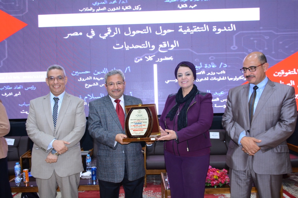 تحت رعاية الدكتور أحمد المنشاوي القائم بعمل رئيس جامعة أسيوط والدكتور أحمد عبد المولي القائم بعمل نائب رئيس الجامعة لشئون التعليم والطلاب شهدت الدكتورة مها غانم نائب رئيس الجامعة لشئون خدمة المجتمع وتنمية البيئة إنطلاق أعمال الندوة التثقيفية تحت عنوان " التحول الرقمي في مصر " والتي نظمها برنامج نظم معلومات السياسات العامة PPIS بكلية التجارة بالجامعة وذلك بحضور الدكتور علاء عبد الحفيظ عميد كلية التجارة, والدكتور عبد السلام نوير عميد كلية الإقتصاد والسياسة جامعة المستقبل والعميد السابق لكلية التجارة جامعة أسيوط والدكتور محمد عدوي وكيل الكلية لشئون التعليم والطلاب , والدكتور أحمد الشوري منسق البرنامج , فضلاً عن ضيوف الجامعة الدكتورة غادة لبيب نائب وزير الإتصالات وتكنولوجيا المعلومات , والدكتور عماد الدين حسين رئيس تحرير جريدة الشروق وعضو مجلس الشيوخ , والدكتور عبد الرحمن محمد ناجي مدير التعليم والإستراتيجيات بمؤسسة ساويرس التعليمية , وبمشاركة نخبة من عمداء ووكلاء وأعضاء هيئة التدريس من مختلف كليات الجامعة , وبحضور أولياء أمور الطلاب ببرنامج PPIS