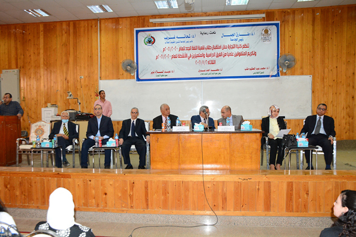 وعن المكرمين صرح الدكتور محمد عدوي أن الحفل تم فيه تكريم الطلاب الحاصلين على المراكز العشرة الأولى بالفرق الدراسية الثلاثة الأولى العام الدراسي الماضي وقد أتى في المراكز الأولى بالفرقة الأولى محمد شحاتة وأسماء عبد الحميد وأماني نادي، وبالفرقة الثانية أريج عاشور ونورهان أحمد وعبد الله رجب، وبالفرقة الثالثة عمرو سمير وميرفت حسين وثريا أيمن.