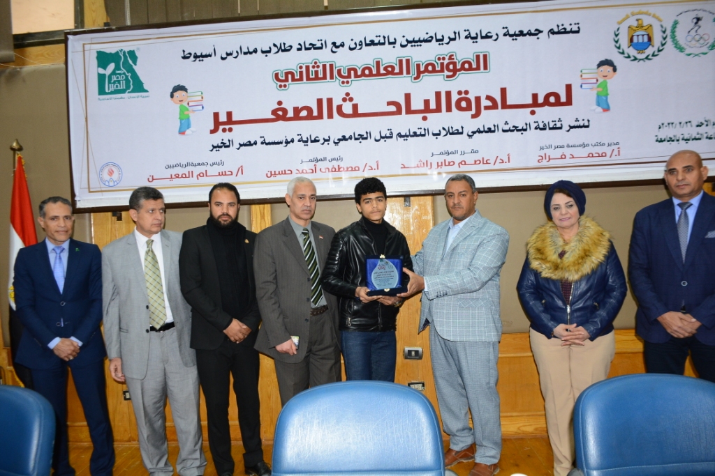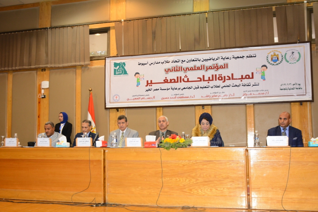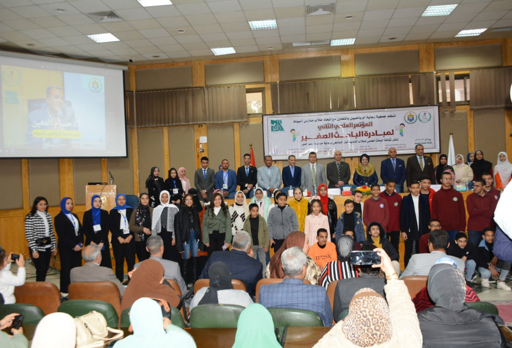 شهدت جامعة أسيوط فعاليات المؤتمر العلمي الثاني لمبادرة الباحث الصغير لنشر ثقافة البحث العلمي لتعليم ماقبل التعليم الجامعي، وذلك تحت رعاية الدكتور أحمد المنشاوي رئيس الجامعة، وبحضور الدكتورة مها غانم نائب رئيس الجامعة لشئون خدمة المجتمع وتنمية البيئة، والدكتور أحمد عبد المولى القائم بعمل نائب رئيس الجامعة لشئون التعليم والطلاب، والدكتور مصطفى أحمد حسين رئيس قسم الكيمياء الصيدلية بكلية الصيدلة ورئيس المؤتمر، والدكتور عاصم راشد رئيس قسم المناهج وطرق التدريس بكلية التربية الرياضية ومقرر المؤتمر، ورعاة تنفيذ المبادرة الأستاذ محمد فراج مدير مكتب مؤسسة مصر الخير بأسيوط والأستاذ حسام المعين رئيس جمعية رعاية الرياضيين باسيوط ومحمد عبد الوهاب، وعدد من أعضاء الجمعيتين، ونخبة من أعضاء هيئة التدريس بالجامعة، وقيادات التربية والتعليم ومديري الإدارات التعليمية بمراكز محافظة أسيوط المشاركة في المبادرة والقيادات الدينية بها، وبمشاركة اتحاد طلاب مدارس محافظة أسيوط، وأكثر من 200 طالب وطالبة من المشاركين بأبحاث من مدارس أسيوط الابتدائية والإعدادية والثانوية وذويهم والمعلمين المشرفين عليهم، وعدد من طلاب مدارس المنيا وسوهاج والوادي الجديد.
