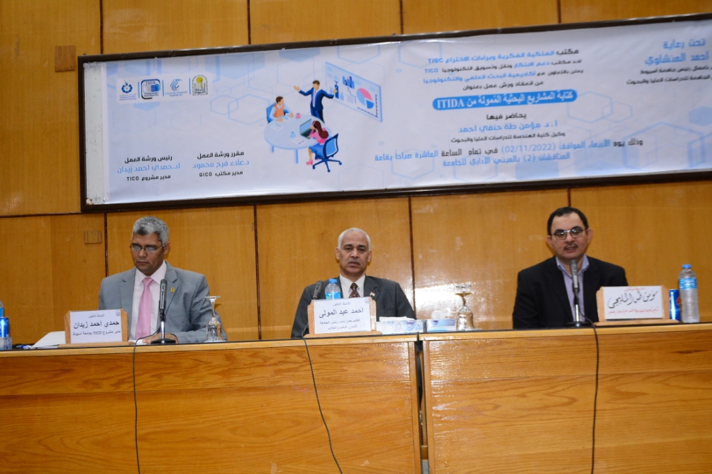 جاء ذلك تعقيباَ على افتتاح ورشة عمل بعنوان "كتابة المشاريع البحثية الممولة من"ITIDA ،و التي يعقدها مكتب الملكية الفكرية وبراءة الإختراع GICO، أحد مكاتب دعم الإبتكار ونقل وتسويق التكنولوجيا TICO بجامعة أسيوط وبالتعاون مع أكاديمية البحث العلمي والتكنولوجيا ، و ذلك بحضور الدكتور أحمد عبدالمولى القائم بعمل نائب رئيس الجامعة لشئون التعليم والطلاب ، والدكتور حمدى احمد زيدان مدير وحده نقل التكنولوجيا المتكاملة ITTU ومدير مكتب التايكو TICO بجامعة أسيوط ،والدكتور علاء فرح محمود مدير مكتب GICO ومقرر الندوة ، وبمشاركة نخبة من أعضاء هيئة التدريس و معاونيهم من مختلف كليات الجامعة ، و التى حاضر فيها الدكتور مؤمن طه المليجى أستاذ هندسة الحاسبات و وكيل كلية الهندسة لشئون الدراسات العليا و البحوث بجامعة أسيوط وأمين اللجنة العلمية الدائمة لهندسة الحاسبات و النظم بالمجلس الأعلى للجامعات.
