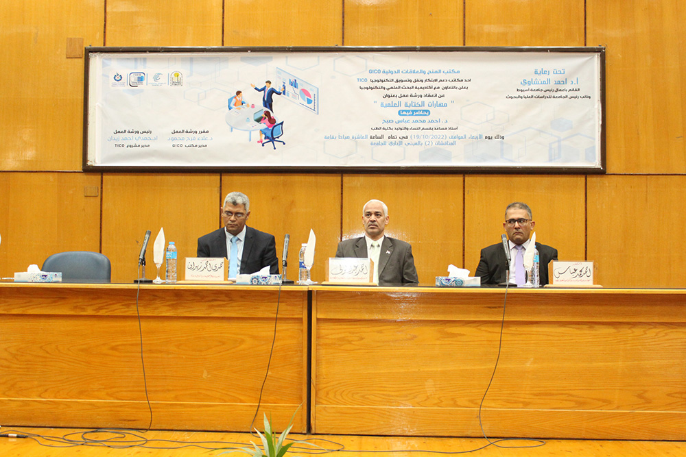 جاء ذلك تعقيباً على افتتاح ورشة عمل "مهارات الكتابة العلمية"، التى تعقد ضمن سلسلة ورش العمل الذى يعقدها مكتب الملكية الفكرية وبراءات الاختراع GICO، أحد مكاتب دعم الابتكار ونقل وتسويق التكنولوجيا TICO بجامعة أسيوط وبالتعاون مع أكاديمية البحث العلمي والتكنولوجيا، وذلك بحضور الدكتور أحمد عبد المولى نائب رئيس الجامعة لشئون التعليم والطلاب والدكتور حمدى زيدان مدير وحدة نقل التكنولوجيا المتكاملة ITTU ومدير مكتب التايكو TICO بجامعة أسيوط والدكتور علاء فرح محمود مدير مكتب GICO ومقرر الندوة ، ونخبة من عمداء ووكلاء الكليات ولفيف من أعضاء هيئة التدريس ومعاونيهم ، وحاضر فيها الدكتور أحمد محمد عباس صبح الأستاذ المساعد بقسم النساء والتوليد بكلية الطب ونائب مدير وحدة تمويل البحث العلمي بالكلية وعضو تحكيم وتحرير في عشرات المجلات الدولية و له عدد كبير من الأبحاث التي حصل عنها على عدة جوائز عالمية.