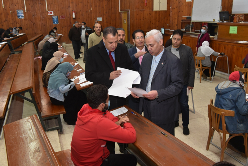 وصرح الدكتور شحاتة غريب إلى أن جولته بدأت بتفقده لجان كلية الحقوق المنعقدة فى صالات الامتحانات والتي تشهد امتحان 3200 طالب وطالبة من طلاب الفرقة الثالثة الممتحنين لمادة قانون العمل والتى استقبله فيها الدكتور حسام محمد السيد وكيل لشئون التعليم والطلاب ولجنة كنترول الكلية والتي تضم الدكتور ثروت عبد العال ، والدكتور محمد حسين موسى ، والدكتور يوسف قدرى أبو حسن وبوجود من أعضاء هيئة التدريس والعاملين المشرفين بالإدارة العامة للمراقبة الطبية ، والأستاذ وائل فتحي مدير صالات الامتحانات على الامتحانات ، والدكتور رضا محمد أبو الفتوح مدير إدارة الطب الوقائي والعلاجي .