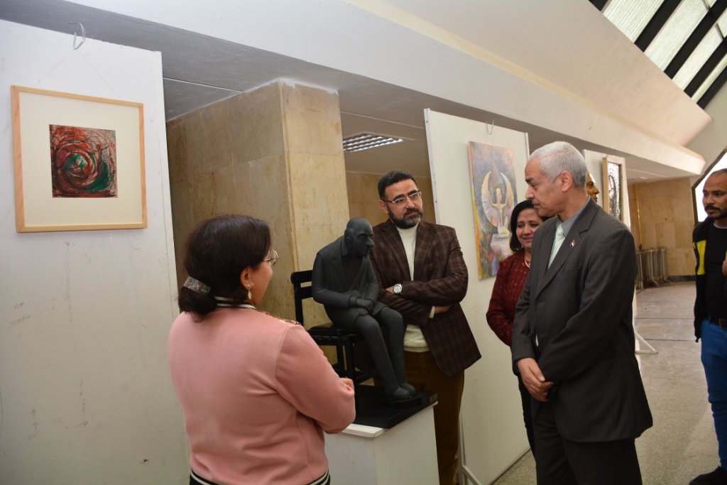 وجاء ذلك تعقيباً على التقرير المقدم عن مشاركة الدكتور أحمد عبد المولى القائم بأعمال نائب رئيس الجامعة لشئون التعليم والطلاب فى إنطلاق فعاليات المعرض الفنى لأعضاء هيئة تدريس كلية الفنون الجميلة والذى اقيم فى رحاب جامعة أسيوط بحضور الدكتور عزت عبد المنعم مرغنى عميد كلية الفنون الجميلة، والدكتورة سحر بطرس وكيل الكلية لشئون خدمه المجتمع وتنمية البيئة والمشرف على قسم التصوير والدكتور محمد عبد الحكيم وكيل الكلية لشئون التعليم والطلاب والمشرف على قسم الجرافيك والدكتور محمد حلمي الحفناوى وكيل الكلية لشئون الدراسات العليا والبحوث والمشرف على قسم العمارة