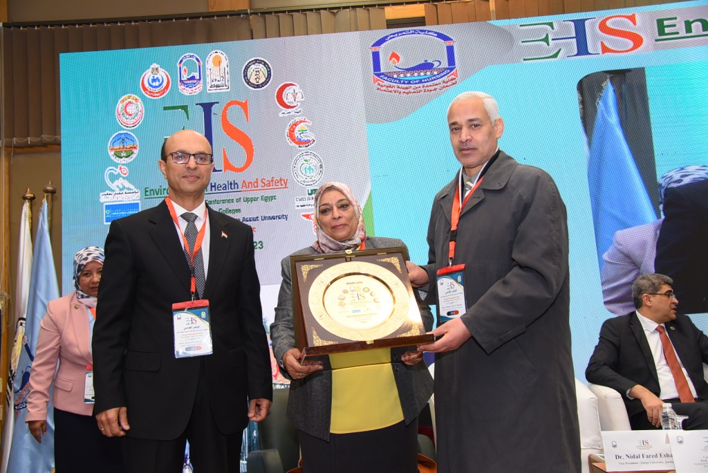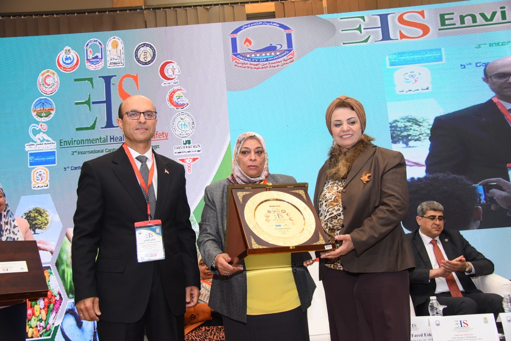 وفي ختام الجلسة قدمت الدكتورة سماح عبد الله درع المؤتمر إلى الدكتور أحمد المنشاوي تقديراً وتكريما لسيادته ، كما قدم رئيس الجامعة دروع التكريم لكل من رئيس جامعة بدر ورئيس جامعة سفنكس و نائب رئيس الجامعة الزرقاء , وكذلك إلى نائبى رئيس الجامعة لشئون خدمة المجتمع وتنمية البيئة , ولشئون التعليم والطلاب , وأيضاً تكريم كلاً من الدكتور محمود شيحة نائب رئيس جامعة سفينكس , والدكتور علاء عطية عميد كلية الطب .