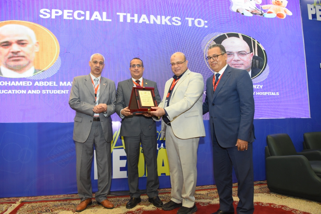 كما أشارت الدكتورة عزة أحمد الطيب أن ختام الجلسة الإفتتاحية تضمن إهداء قسم طب الأطفال دروع تقديرية شكراً وعرفاناً للدكتور أحمد عبد المولي القائم بعمل نائب رئيس الجامعة لشئون التعليم والطلاب , الدكتور علاء عطية عميد كلية الطب ورئيس مجلس إدارة المستشفيات الجامعية , الدكتور إيهاب فوزي المدير التنفيذي للمستشفيات الجامعية , الدكتور أيمن منصور مدير هيئة التأمين الصحي, فضلا عن تكريم حشداً من أساتذة طب الأطفال المشاركين في المؤتمر من مختلف الجامعات المصرية .