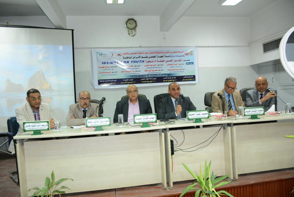 تحت رعاية الدكتور أحمد المنشاوي رئيس جامعة أسيوط، افتتح الدكتور محمود عبد العليم نائب رئيس الجامعة لشئون البيئة وخدمة المجتمع، اليوم العلمي الثامن لوحدة الجهاز الهضمي بقسم الأمراض الباطنة بجامعة أسيوط، والذي يأتي بالتعاون مع جمعية صعيد مصر للجهاز الهضمي والكبد، تحت عنوان" القولون العصبي حقيقة أم أسطورة.