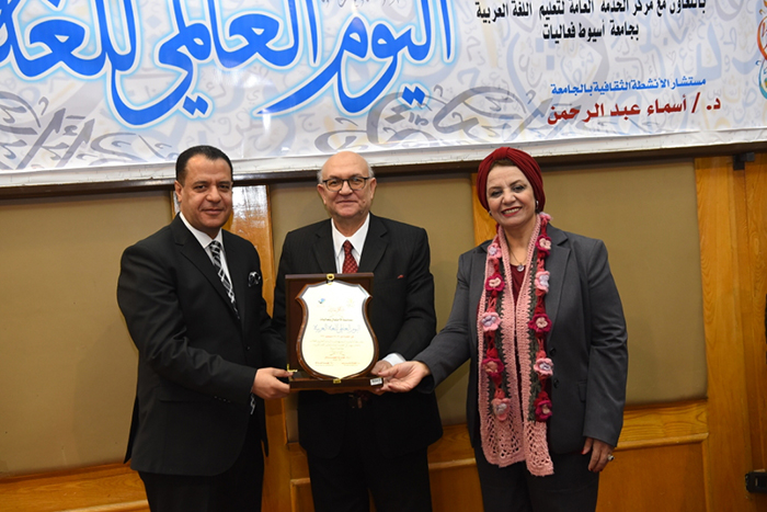 تحت رعاية الدكتور طارق الجمال رئيس جامعة أسيوط شهدت جامعة أسيوط اليوم الاثنين 20 ديسمبر من الشهر الجاري انطلاق فعاليات الاحتفال باليوم العالمي للغة العربية والذي نظمه قطاعي خدمة المجتمع وتنمية البيئة و شئون التعليم و الطلاب و بالتعاون مع مركز الخدمة العامة لتعليم اللغة العربية بجامعة أسيوط ، و ذلك بحضور الدكتور شحاتة غريب نائب رئيس الجامعة لشئون التعليم والطلاب و الدكتورة مها غانم نائب رئيس الجامعة لشئون خدمة المجتمع وتنمية البيئة; و الدكتور محمد عبد المالك نائب رئيس جامعة الأزهر لوجة قبلى والدكتور محمود عبد المعطى الأستاذ بقسم اللغة العربية وكيل كلية الآداب لشئون خدمة المجتمع وتنمية البيئة بجامعة أسيوط و الدكتور محمد الطيب مدير مركز الخدمة العامة لتعليم اللغة العربية و الدكتور حافظ مغربي أستاذ و رئيس قسم البلاغة والنقد بكلية دار العلوم بجامعة المنيا والأستاذ مجاهد خلف مدير تحرير جريدة الجمهورية بالقاهرة ولفيف من عمداء و وكلاء الكليات وأعضاء هيئة التدريس بمختلف كليات الجامعة و ممثلي هيئات والمؤسسات المجتمعية والتعليمية و الدينية وبمشاركة طلاب مدارس دار الكوثر ومدرسة النهضة الإعدادية .