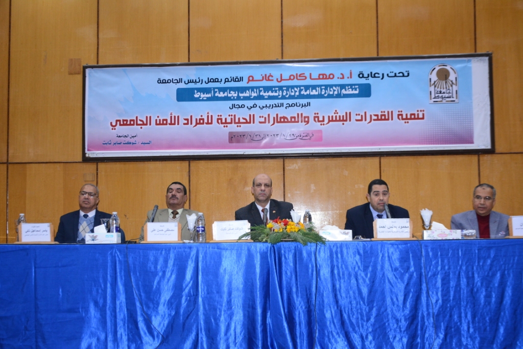 شهدت جامعة أسيوط اليوم انطلاق فاعليات الدورة التدريبية في مجال تنمية القدرات البشرية والمهارات الحياتية لأفراد الأمن الجامعي والتي تنظمها الإدارة العامة لإدارة وتنمية المواهب، وذلك تحت رعاية الدكتورة مها غانم القائم بعمل رئيس جامعة أسيوط، والأستاذ شوكت صابر أمين عام الجامعة، وبحضور الدكتور سعودي محمد حسن عميد كلية الخدمة الإجتماعية، والأستاذ مصطفى حسن أمين الجامعة المساعد، والأستاذ محمود يونس رئيس الإدارة المركزية للموارد البشرية، واللواء ياسر ذكي مدير عام إدارة الأمن الجامعي، والأستاذ خالد عمران مدير عام إدارة وتنمية المواهب، ولفيف من أفراد الأمن الجامعي.