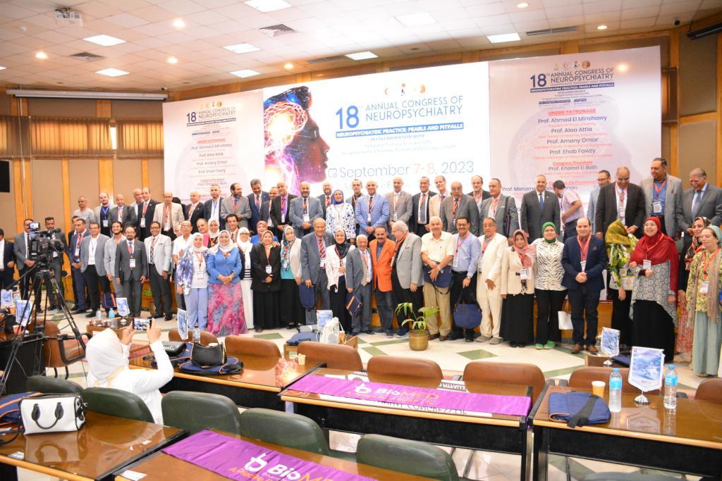 انطلقت فعاليات المؤتمر السنوي الثامن عشر لقسم الأمراض العصبية والنفسية، اليوم الخميس ٧ سبتمبر ، تحت رعاية الدكتور أحمد المنشاوى رئيس الجامعة، بالتعاون مع الجمعية المصرية للطب النفسي، والجمعية المصرية للأمراض العصبية والنفسية وجراحة المخ والأعصاب.