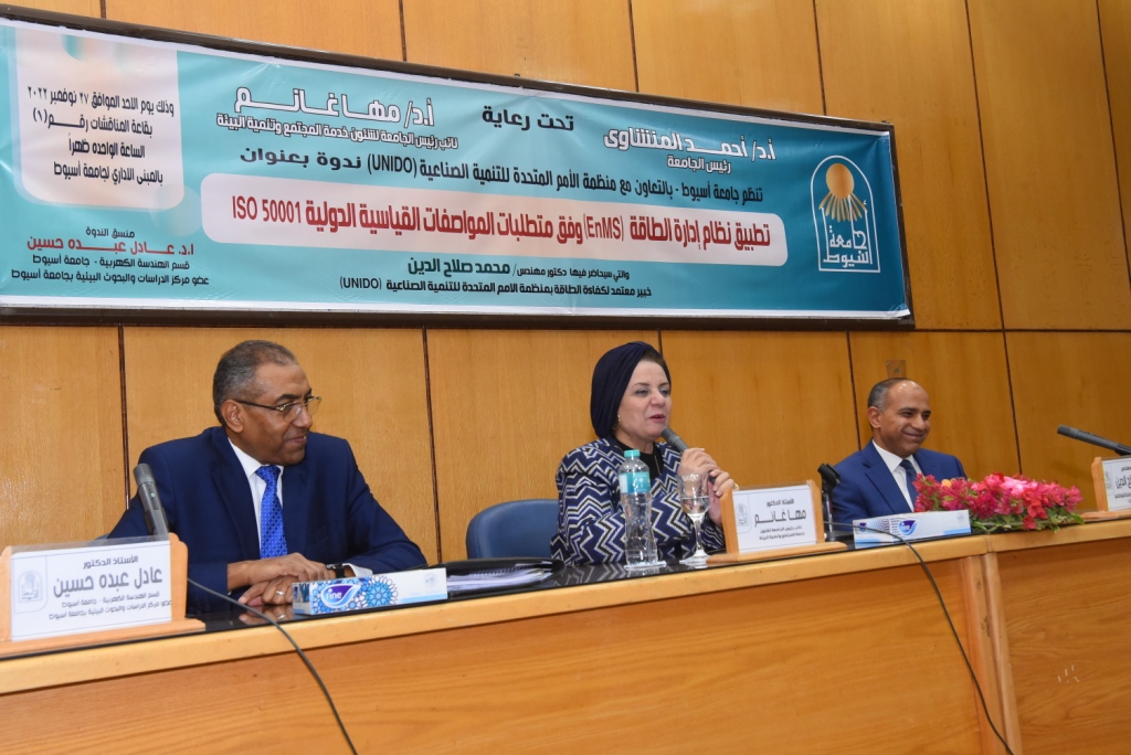 تحت رعاية الدكتور أحمد المنشاوى القائم بعمل رئيس جامعة أسيوط شهدت الدكتورة مها غانم نائب رئيس الجامعة لشئون خدمة المجتمع و تنمية البيئة انطلاق فاعليات ندوة بعنوان تطبيق نظام إدارة EnMS وفق متطلبات المواصفات القياسية الدولية ISO5001 ،والتي نظمتها إدارة الجامعة بالتعاون مع منظمة الأمم المتحدة للتنمية الصناعية UNIDO و ذلك بحضور الدكتور عادل عبده الأستاذ بقسم الهندسة الكهربائية بكلية الهندسة و عضو مركز الدراسات و البحوث البيئية و منسق الندوة ، ولفيف من أعضاء هيئة التدريس ومعاونيهم وطلاب كلية الهندسة و التي حاضر فيها دكتور مهندس محمد صلاح الدين خبير معتمد لكفاءة الطاقة بمنظمة الأمم المتحدة للتنمية الصناعية UNIDO .