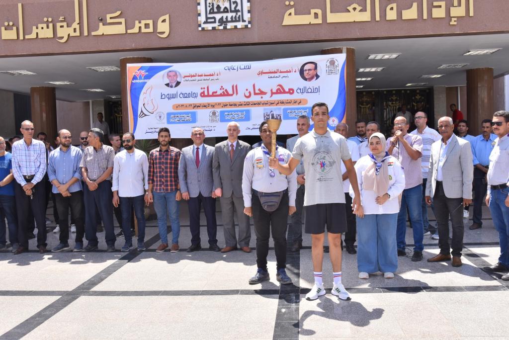 شارك في مراسم انطلاق الشعلة من أمام المبنى الإداري بالجامعة؛ الدكتور أحمد عبد المولى نائب رئيس الجامعة لشئون التعليم والطلاب، والدكتور محمود عبد العليم نائب رئيس الجامعة لشئون خدمة المجتمع وتنمية البيئة، والدكتور هيثم إبراهيم مدير عام الإدارة العامة لرعاية الشباب بالجامعة، وعدد من مديري الإدارات ، والعاملين برعاية الشباب، ووفد من جامعة حلوان ضم: الدكتور مصطفى محمد رزق رائد الفوج، وعضوين من العاملين بها ،و(٥) من طلاب جامعة حلوان، وعدداً من طلاب جامعة أسيوط.