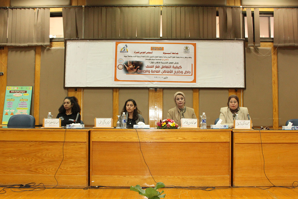 جاء ذلك تعقيباً على انطلاق ورش عمل تدريبية للطلاب حول كيفية التعامل مع العنف داخل وخارج الأماكن العامة والخاصة، والتي ينظمها مركز دراسات وبحوث حقوق الإنسان ووحدة مناهضة العنف والتمييز والإدارة العامة لرعاية الشباب بالجامعة بالتعاون مع مؤسسة سيف كيدزSafe Kids وتحت رعاية الجامعة والمجلس القومي للمرأة، وذلك بحضور الدكتورة مها غانم نائب رئيس الجامعة لشئون الدراسات العليا والبحوث، والدكتورة مروة كدواني مقرر المجلس القومي للمرأة بأسيوط، و كرستين فكري منسق المركز، وفريدة كوش عضو لجنة الشباب بالمجلس القومي للمرأة، وسارة سليم سامي مدربة في مؤسسة "مطمن"، ونخبة من أعضاء هيئة التدريس وأعضاء المجلس القومي للمرأة بأسيوط، وأعضاء اتحاد طلاب جامعة أسيوط وطلاب من أجل مصر وحشد من طالبات وطلاب الجامعة.