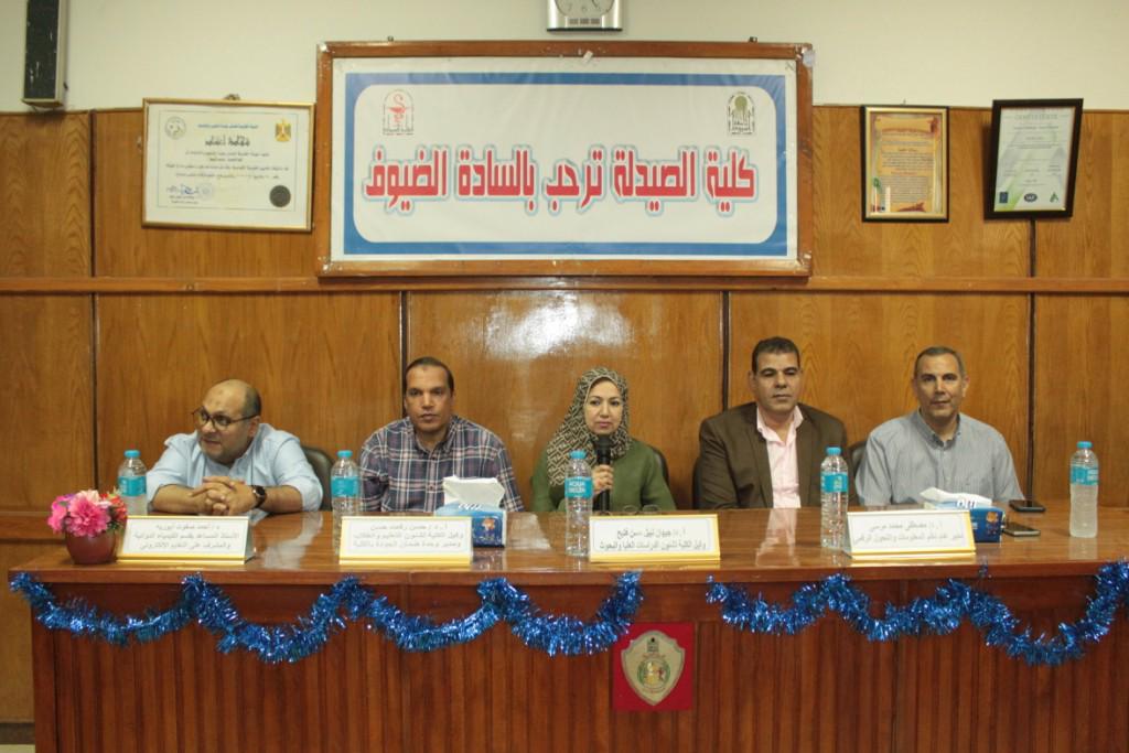 وفي هذا الاطار، نظمت كلية الصيدلة ورشة عمل حول التحول الرقمى ضمن سلسلة من ورش العمل حول التحول الرقمى فى مختلف كليات الجامعة، تحت إشراف الدكتور أحمد عبد المولى نائب رئيس الجامعة لشئون التعليم والطلاب وعميد كلية الصيدلة، والدكتور حسن رفعت حسن وكيل الكلية لشئون التعليم والطلاب ومدير وحدة ضمان الجودة بالكلية. وبحضور الدكتورة جيهان نبيل حسن فتيح وكيل الكلية لشئون الدراسات العليا والبحوث ، الدكتور أحمد صفوت أبو ريه الأستاذ المساعد بقسم الكيمياء الدوائية والمشرف على التعليم الالكتروني بالكلية والدكتورة سعاد عبد اللطيف حسن مدير وحدة الخدمات التكنولوجيا، وحاضر في الورشة الدكتور مصطفى محمد مرسى مدير عام مركز نظم المعلومات والتحول الرقمى.