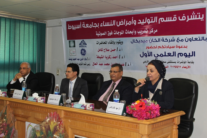 جاء ذلك خلال افتتاحها اليوم العلمي الأول لقسم التوليد وأمراض النساء والذى ينظمه مركز تدريب وأبحاث الموجات فوق الصوتية بالمستشفى بالتعاون مع شركة الكان ميديكال بقاعة مؤتمرات مستشفى صحة المرأة وذلك تحت رعاية الدكتور طارق الجمال رئيس الجامعة والمشرف على كلية الطب وبحضور الدكتور علاء الدين عبد الحميد مدير المستشفى ورئيس القسم ، والدكتور حسن صلاح نائب رئيس جامعة أسيوط الأسبق ومدير مركز تدريب وأبحاث الموجات فوق الصوتية بالمستشفى ، والدكتور ضياء الدين عبد العال النشار رئيس وحدة الموجات فوق الصوتية وبمشاركة الدكتور أحمد زكريا الشيخة أستاذ التوليد وأمراض النساء بوحدة الجنين بمستشفى القصر العينى .