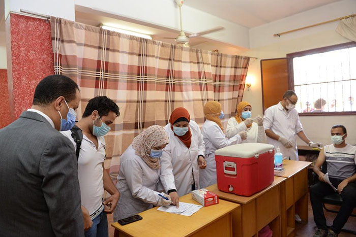 وفى هذا السياق أعلن الدكتور شحاتة غريب نائب رئيس الجامعة لشئون التعليم والطلاب عن إنطلاق حملة تطعيم طلاب المدينة الجامعية الجدد والقدامى وذلك بمعدل يومى يصل إلى ألفين طالب وطالبة فى كل يوم ، جاء ذلك خلال جولته التفقدية لمتابعة أعمال التطعيم والتى رافقه فيها الأستاذ عرفة أبو العلا مدير عام قطاع المدن الجامعية ، والدكتور محمد بدر مدير المدن الجامعية طلبة ، والسيدة أمانى أبو صغير مدير ىالمدن الجامعية طالبات والدكتورة بثينة الفاتح مدير عام الإدارة العامة للشئون الطبية ، والدكتور رضا أبو الفتوح مدير إدارة الطب الوقائى والعلاجى بالإدارة الطبية .