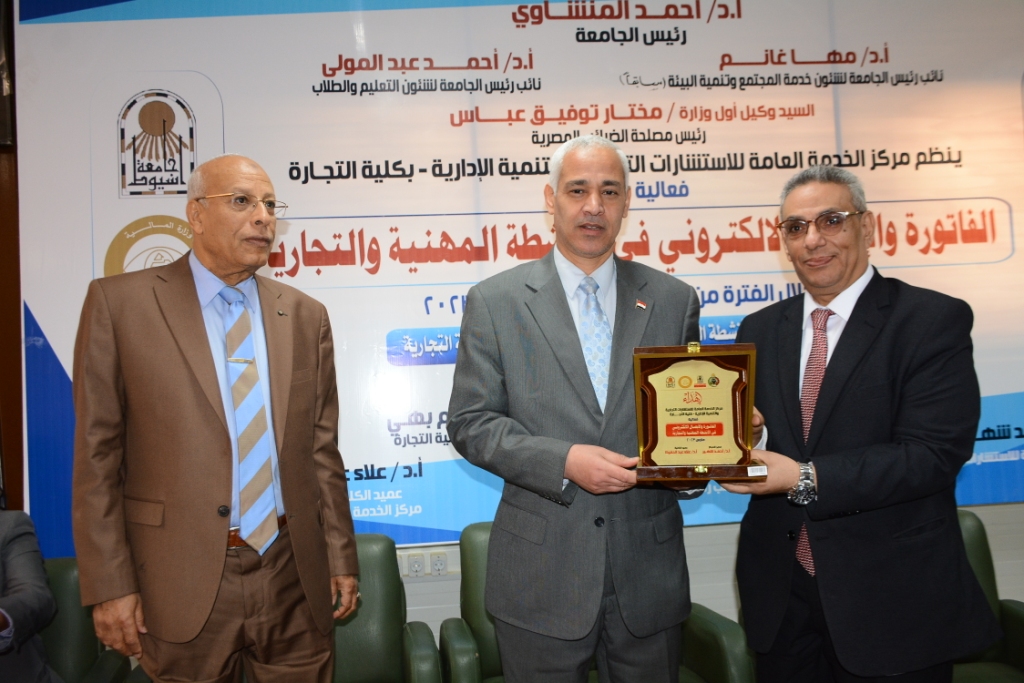 أشاد الدكتور أحمد المنشاوي رئيس جامعة أسيوط بما توليه القيادة السياسية في عهد فخامة الرئيس عبد الفتاح السيسي بشأن الاهتمام بمصر الرقمية و التي تساهم في رفع الأعباء عن المواطنين في ظل التطور الكبير في قدرات الحاسب والإتصالات والثورة في نقل المعلومات , مؤكداً علي ضرورة التواصل مع كافة مؤسسات المجتمع المدني والضريبي لنشر الوعي الضريبي اللازم لتطبيق كافة المنظومات الإلكترونية والتي تستهدف تقديم خدمات إلكترونية متميزة .