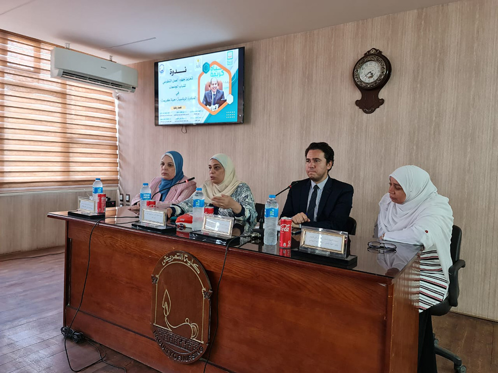 و في سياق متصل أكدت الدكتورة سماح عبد الله علي حرص إدارة الكلية علي توعية وتثقيف أبنائها الطلاب ونشر ثقافة العمل التطوعي وزيادة وعي الطلاب الثقافي والإجتماعي والحضاري وتوعيتهم بالمشروعات القومية , كما دعت أبنائها الطلاب علي المشاركة في القوافل الصحية والتثقيفية التي تؤديها مبادرة حياة كريمة داخل القري والنجوع بالمحافظة , موضحةً أن الندوة التوعوية حاضر فيها الأستاذ أحمد عاطف هاشم عدة موضوعات منها الجانب التعريفي لكافة الأنشطة التي تقوم بها المبادرة الرئاسية " حياة كريمة " في 7 مراكز داخل المحافظة , والمشروعات التي تم تطبيقها علي أرض الواقع , فضلاً عن الجانب التوعوي بأهمية العمل التطوعي والمجالات المتاح المشاركة بها في المبادرة .