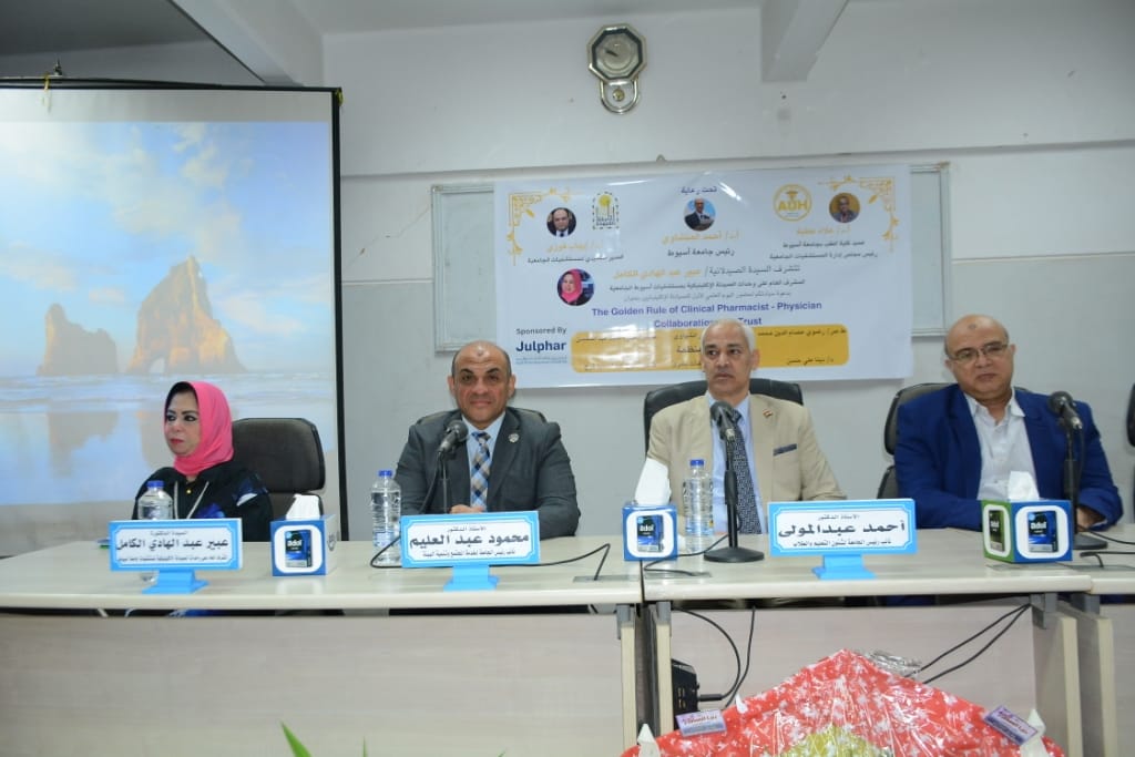نظمت مستشفيات جامعة أسيوط، تحت رعاية الدكتور أحمد المنشاوي رئيس جامعة أسيوط، وبإشراف الدكتور علاء عطية عميد كلية الطب ورئيس مجلس إدارة المستشفيات الجامعية، والدكتور إيهاب فوزي المدير التنفيذي للمستشفيات الجامعية، اليوم العلمي الأول للصيادلة الإكلينيكيين حول: "التكامل بين دور الطبيب والصيدلي الإكلينيكي؛ لتحسين الخدمات الطبية"، بحضور الدكتور أحمد عبد المولى نائب رئيس الجامعة لشئون التعليم والطلاب، والدكتور محمود عبد العليم نائب رئيس الجامعة لشئون خدمة المجتمع وتنمية البيئة، وتنظيم الدكتورة عبير عبد الهادي الكامل المشرف العام على وحدات الصيدلة الإكلينيكية بالمستشفيات الجامعية ومقرر اليوم العلمي.