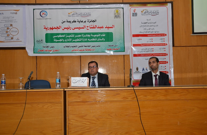 نظمت إدارة التطوير الادارى والجودة بجامعة أسيوط "اليوم التدريبى الخاص بجائزة مصر للتميز الحكومى" والتي تنظمها وزارة التخطيط والمتابعة والإصلاح الإداري تحت رعاية السيد الرئيس عبد الفتاح السيسى، وذلك بالتعاون مع وزارة التخطيط والمتابعة والإصلاح الادارى ووزارة التعليم العالى والمعهد القومى للإدارة وبحضور مصطفى عبد الستار مدير جائزة المؤسسة المتميزة والدكتور عبد الحكيم رضوان سعيد المدرب بجائزة مصر للتميز الحكومي ومحمد عباس مدير التطوير الإداري والجودة بجامعة اسيوط وممثلى الإدارة العليا للجودة بالجامعة وبحضور ممثلى كليات جامعة أسيوط وممثلي جامعة سوهاج.