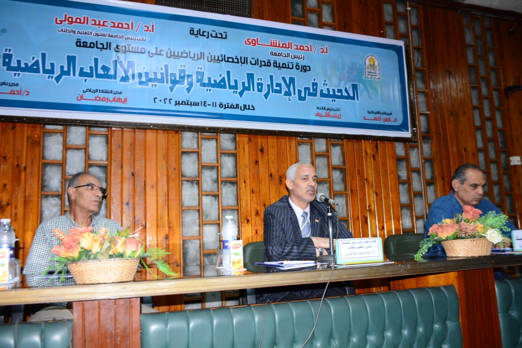 شهدت الجامعة حفل ختام برنامج دورة تنمية قدرات الأخصائيين الرياضيين على مستوى الجامعة تحت عنوان"الحديث في الإدارة الرياضية و قوانين الألعاب الرياضية"،و التي نظمتها الإدارة العامة لرعاية الشباب ، تحت رعاية الدكتور أحمد المنشاوي القائم بعمل رئيس جامعة أسيوط ، وذلك بحضور الدكتور أحمد عبدالمولى القائم بعمل نائب رئيس الجامعة لشئون التعليم و الطلاب ، و الدكتور عادل تمام وكيل كلية الزراعة لشئون التعليم و الطلاب ، والدكتور أحمد شريت مدير عام الإدارة العامة لرعاية الشباب، و الأستاذ إيهاب رمضان مدير النشاط الرياضي وبمشاركة 100 من الأخصائيين الرياضيين على مستوى الجامعة.