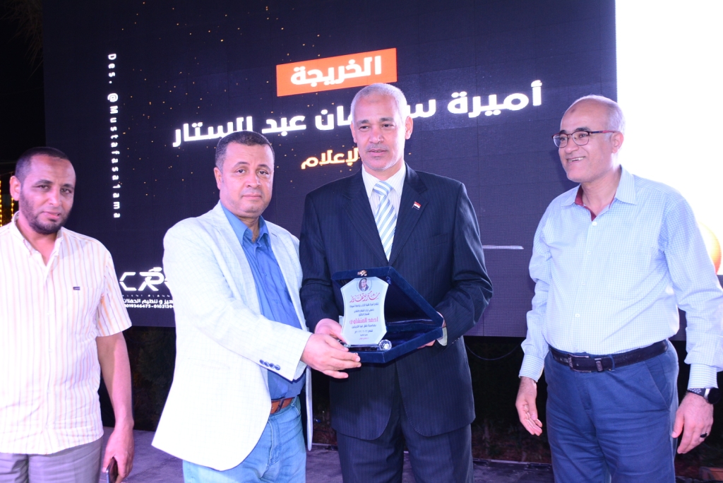 في نهاية الحفل تم تقديم درع الكلية للدكتور أحمد المنشاوي رئيس جامعة أسيوط، والدكتور أحمد عبدالمولى نائب رئيس الجامعة لشئون التعليم و الطلاب.