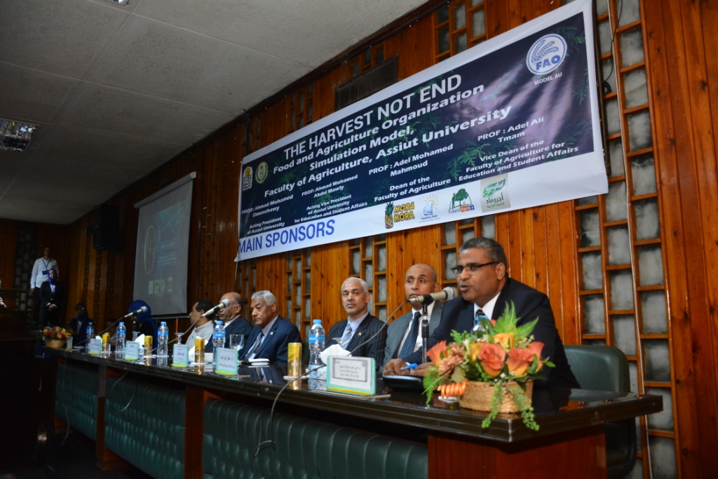تحت رعاية الدكتور أحمد المنشاوي القائم بعمل رئيس جامعة أسيوط ختام نموذج محاكاه منظمة الأغذية والزراعة بقاعة المؤتمرات الدولية بكلية الزراعة، وذلك بحضور الدكتور أحمد عبد المولي القائم بأعمال نائب رئيس الجامعة لشئون التعليم والطلاب، والدكتور عادل محمد محمود عميد كلية الزراعة , والدكتور جلال عبد الفتاح الصغير وكيل الكلية لشئون خدمة المجتمع وتنمية البيئة, والدكتور عادل علي تمام وكيل الكلية لشئون التعليم والطلاب, والدكتور علي أحمد عبد اللاه المشرف الأكاديمي للنموذج, فضلاً عن حضور كوكبة من السادة أعضاء هيئة التدريس, ومشاركة حشد من طلاب وخريجي الجامعة من مختلف الكليات .