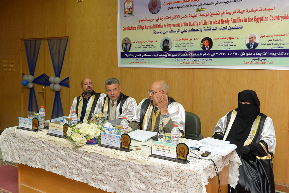 جاء ذلك في أعقاب مناقشة رسالة ماجستير في مجال الخدمة الاجتماعية بقسم التخطيط الاجتماعى تحت عنوان اسهامات مبادرة حياة كريمة فى تحسين نوعية الحياة للاسر الاكثر احتياجا فى الريف المصرى والمقدمة من الباحثة زهرة جمال محمد مهران بقسم التخطيط الاجتماعى بكلية الخدمة الاجتماعية , وذلك بحضور الدكتور احمد محمد يوسف عليق استاذ التخطيط الاجتماعى بكلية الخدمة الاجتماعية بجامعة حلوان "مناقشا ورئيسا"والدكتور سعودى محمد حسن استاذ التخطيط الاجتماعى وعميد كلية الخدمة الاجتماعية بجامعة اسيوط "مشرفا" والدكتور عبد الرحمن على عبد الرحمن استاذ التخطيط الاجتماعى المساعد بكلية الخدمة الاجتماعية جامعة اسيوط "مناقشا" و الدكتورة نورا عطية كامل راشوان استاذ التخطيط الاجتماعى المساعد بكلية الخدمة الاجتماعية جامعة اسيوط "مشرفا "