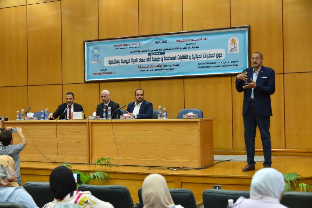 وفي السياق ذاته، أعلن الدكتور محمد حسين موسى مدير مركز رعاية الطلاب ذوي الإعاقة عن تولي المركز عقد عدد من الدورات التدريبية للطلاب ذوي الهمم، خلال الفترة الصيفية القادمة؛ لتعلم مهارات الحاسب الآلي ، وتعلم اللغة الإنجليزية؛ لرفع قدرات الطالب، وتنمية مهاراته ؛ لإتاحة الفرصة للتقدم بتلك المنح ، مضيفًا أنه علي هامش الندوة تم عقد ورشة عمل حول المهارات الحياتية، والتقنيات المساعدة، وكيفية أداء مهام الحياة اليومية باستقلالية .