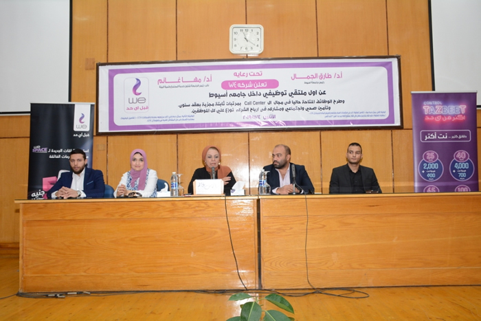 ومن جانبه أوضح أحمد أبوخليل ان الملتقى يعد حلقة وصل بين الخريجين و شركة WE من خلال طرح 200فى مجال Call Center بمرتبات مجزية وعقد سنوي وتأمين صحي وإجتماعى ومشاركة فى أرباح الشركة توزع على كل الموظفين ، وذلك يعد إسهاماً من شركة WE تجاه الخريجين وتأكيداً لسعيها فى بناء أطر جديدة للتعاون مع الجامعة.