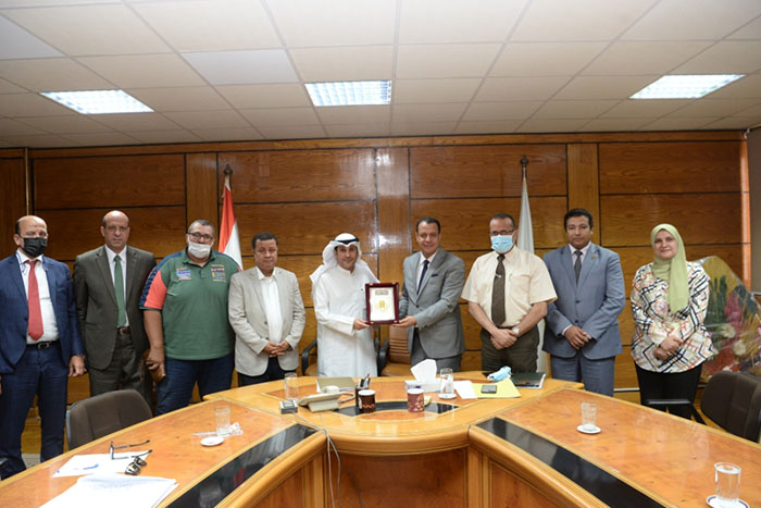 وفى ختام الاجتماع ونيابة عن الدكتور طارق الجمال رئيس الجامعة قدم الدكتور شحاتة غريب نائب رئيس الجامعة لشئون التعليم والطلاب درع الجامعة إهدءً وتكريماً للدكتور أحمد رشيد المطيرى الملحق الثقافى لدولة الكويت الشقيقة .