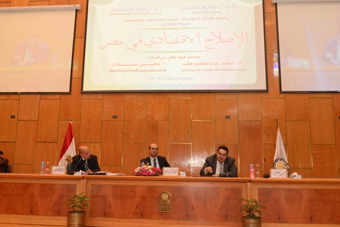 أكد الدكتور احمد المنشاوي نائب رئيس جامعة أسيوط لشئون الدراسات العليا والبحوث خلال ترأسه لوقائع ندوة تثقيفية حول" الإصلاح الاقتصادي فى مصر " والتي نظمها قطاع الدراسات العليا والبحوث بالجامعة ، تحت رعاية الدكتور طارق الجمال رئيس الجامعة ، ان الندوة تهدف إلى استعراض عدد من الأهداف الرئيسية والتي جاءت فى مقدمتها نشر ثقافة الفكر الاقتصادي داخل أسرة الجامعة والمجتمع المحيط ، والتوعية بسياسات الإصلاح الاقتصادي فى مصر وذلك للحاجة الملحة للتوعية بشأن الظواهر الاقتصادية التي نشهدها على المستوى المحلى والاقليمى والعالمي ، حيث شهدت الندوة حضور الدكتور محمد عبد العظيم أستاذ ورئيس قسم الاقتصاد والمالية العامة بكلية التجارة بالجامعة ومقرر الندوة ، والأستاذ محسن عادل عضو المجلس التخصصي للتنمية الاقتصادية التابع لرئاسة الجمهورية ، وبمشاركة عدد من القيادات الشعبية والدينية ورواد الأعمال بالمحافظة ، هذا على جانب لفيف من عمداء الكليات وأعضاء هيئة التدريس.