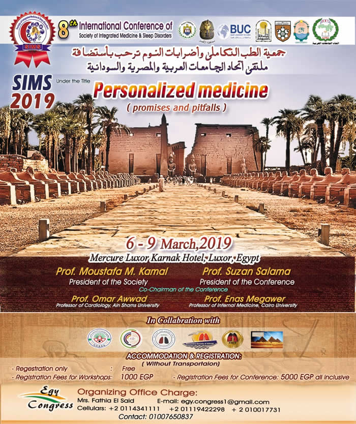 أعلن الدكتور مصطفى كمال رئيس جامعة أسيوط الأسبق ورئيس جامعة بدر الحالي ورئيس جمعية الطب التكاملي واضطرابات النوم بجامعة أسيوط عن إطلاق الجمعية لمؤتمرها الثامن فى مارس المقبل فى الفترة من 6 إلى 9 مارس 2019 وذلك تحت عنوان "تفعيل سبل العلاج لكل مريض"