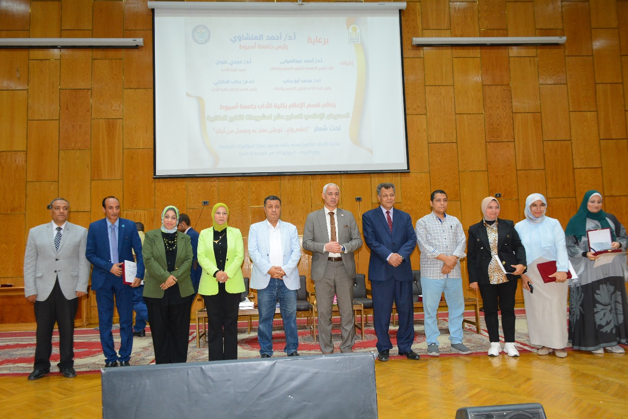 كما شهد الاحتفال كلمة مسجلة للدكتور طارق سعدة، نقيب الإعلاميين بجمهورية مصر العربية وعضو مجلس الشيوخ، أكد خلالها على ضرورة وعي الشباب بتحديات المرحلة الراهنة والظروف المحيطة بها، في ظل التطور المذهل في الوسائط الإعلامية الجديدة، التي أصبحت منبرًا للشباب لممارسة العمل الإعلامي، معرباً عن تقديره لجامعة أسيوط العريقة، ومتمنيًا للخريجين التفوق والتميز في مسيرتهم المهنية.