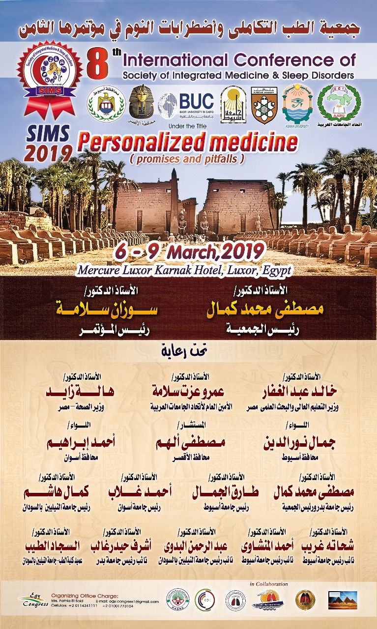 أعلن الدكتور مصطفى كمال رئيس جامعة أسيوط الأسبق ورئيس جامعة بدر الحالي ورئيس جمعية الطب التكاملي بجامعة أسيوط عن انطلاق أعمال المؤتمر الدولي الثامن للجمعية غداً والمنعقد في مدينــة الأقصر في الفترة من 6 إلى 9 مارس 2019 ثم يومي 10 – 11 مارس 2019 بمستشفى أسوان الجامعي والذي تم تنظيمه بالتعاون جامعات أسيوط ، وأسوان وبدر وجامعة النيلين السودانية .