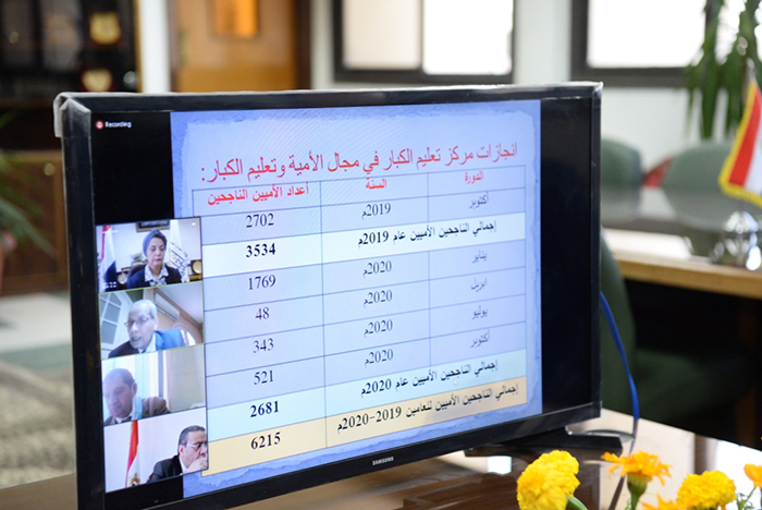 و تناولت الدكتورة مها كامل غانم خلال الاجتماع نشاط المركز وذلك في إطار بروتوكول التعاون المبرم بين المجلس الأعلى للجامعات والهيئة العامة لتعليم الكبار وتوليه منذ إنشائه عقد عدد من الندوات الكبرى في مجال محو الأمية وتعليم الكبار ، كما شهد العام الجامعي 2019/2020 عقد عدد 4 دورات لإعداد معلمين متخصصين في تعليم الكبار والتى تضمنت تأهيل 2400 طاب جامعي علي كيفية العامل مع الدارسين ومحو الأمية .