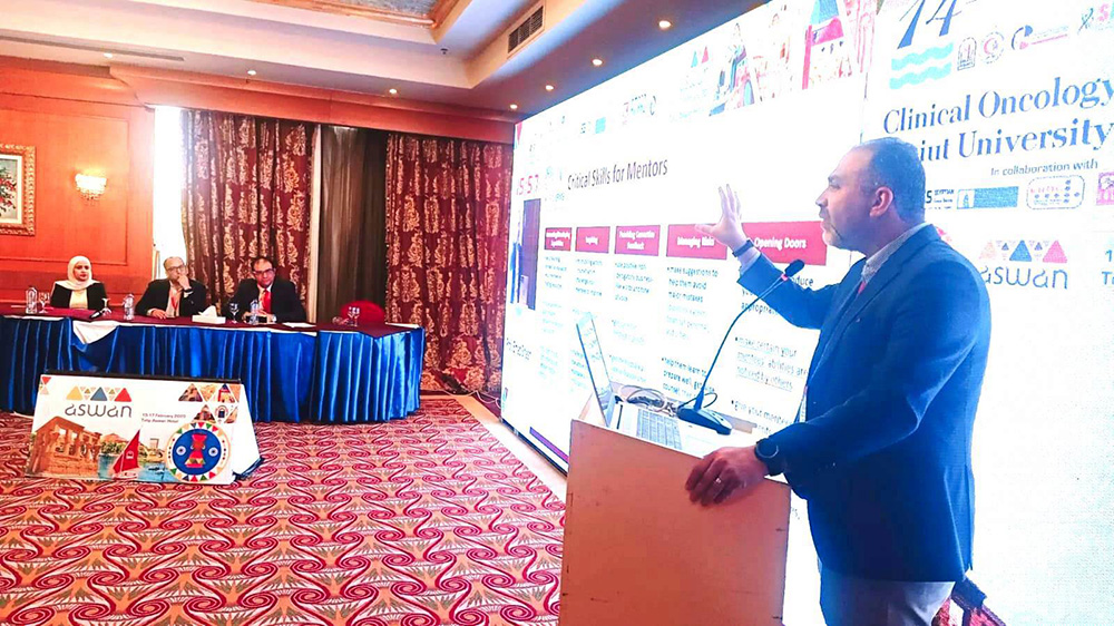 جاء ذلك فى تعقيب رئيس جامعة أسيوط على التقرير المقدم من الدكتور علاء عطية عميد كلية الطب ورئيس مجلس إدارة مستشفيات أسيوط الجامعية عن إنطلاق أعمال المؤتمر السنوى الرابع عشر لقسم علاج الأورام والطب النووى والمنعقد فى مدينة أسوان فى الفترة من 15 حتى 17 من فبراير الجارى والذى يُعد أحد المؤتمرات الدولية الكبرى التى تنظمها الكلية وذلك استثماراً لإمكانيات القسم وتاريخه العريق والذى يُعد أقدم الاقسام الطبية المتخصصة فى علاج الأورام على مستوى جامعات الصعيد والوجه القبلى .