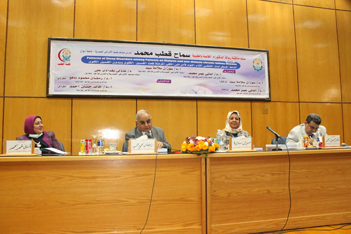 تحت رعاية الدكتور طارق الجمال رئيس جامعة أسيوط شهدت الجامعة مناقشة رسالة دكتوراه مقدمة من الطبيبة سماح قطب محمد المدرس المساعد بقسم الأمراض الصدرية بجامعة أسوان ، حيث كشف الدكتور أحمد المنشاوي نائب رئيس الجامعة لشئون الدراسات العليا أن الرسالة جاءت بعنوان " أنماط اضطرابات التنفس أثناء النوم لأمراض الكلى المزمنة تحت الغسيل الكلوى وبدون الغسيل الكلوى " والتي تعكس دور جامعة أسيوط العلمي المحوري والهام والممتد تأثيره لكافة جامعات صعيد مصر وذلك بما تضمه من علماء أجلاء فى مختلف التخصصات ، مؤكداً كذلك على حرص الجامعة على تسخير ما تملكه من إمكانيات بشرية وعلمية من أجل أثراء الحركة البحثية والدراسية فى مصر وتقديم يد العون لشباب الباحثين من الدارسين بجامعة أسيوط أو جامعات الوجه القبلى المجاورة .