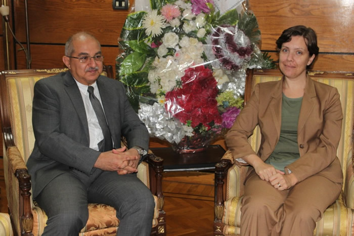 جاء ذلك خلال استقباله للسيدة كونسى ديرمودى مديرة مشروع المنح المقدمة للجامعات المصرية بهيئة الايمدايست والأستاذة هبه شعلان مسئولة التوظيف وشئون الخريجين ومنح الجامعات الحكومية فى الهيئة وذلك بحضور الأستاذ رمضان توفيق مدير عام شئون التعليم بالجامعة .