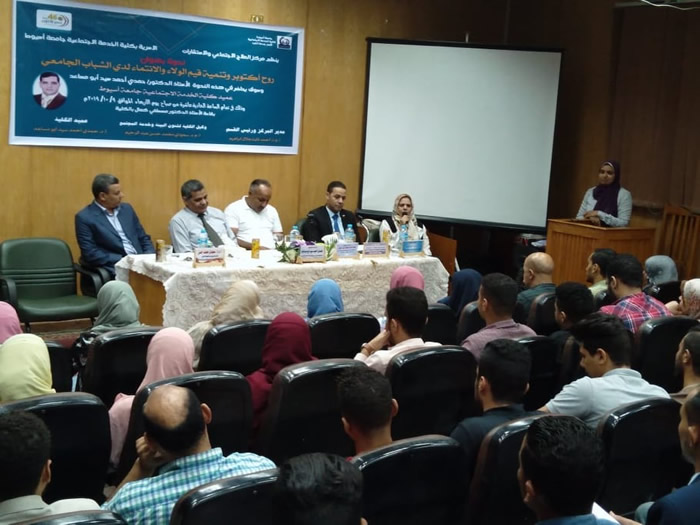جاء ذلك تعقيباَ على انطلاق فعاليات الندوة التثقيفية بعنوان "روح أكتوبر و تنمية قيم الولاء و الانتماء لدى الشباب الجامعي " و التي نظمها مركز العلاج الاجتماعي و الاستشارات الأسرية بكلية الخدمة الاجتماعية ،و ذلك بحضور الدكتور حمدي أبو مساعد عميد الكلية و المحاضر الرئيسي ،و الدكتور سعودى محمد حسن وكيل الكلية لشئون خدمة المجتمع و تنمية البيئة ، و الدكتور أحمد ثابت هلال مدير المركز ورئيس القسم ،و لفيف من أعضاء هيئة التدريس و معاونيهم وممثلي الإدارات المختلفة من الكلية .