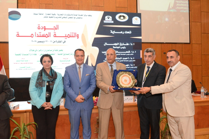 وصرح الدكتور عبد السلام نوير عميد كلية التجارة ورئيس مجلس إدارة المركز أن ختام الجلسة الافتتاحية شهدت تكريم جامعة أسيوط لوفد المجلس الوطنى للتدريب والتعليم والمشارك فى أعمال المؤتمر وهو التكريم الذي تضمن تقديم الدكتور شحاتة غريب لدرع الجامعة إهداءً للدكتور طارق الحصرى نائب رئيس المجلس الوطنى للتدريب والتعليم ومساعد وزير التعليم للتطوير الإداري سابقاً ، والدكتور مدحت عبد الوهاب أمين عام المجلس الوطنى للتدريب والتعليم وعضو اللجنة القومية للتعليم بالهيئة العامة للمواصفات والجودة والدكتور عمر عبد الهادي مستشار وزير المالية ، والدكتور محمد لاشين عضو مجلس أمناء المجلس وممثل مصر فى هيئة التثقيف العالمية ، والدكتور محمد السيد المدير التنفيذي للمجلس الوطنى للتدريب والتعليم ، والدكتور عاشور العمري رئيس هيئة تعليم الكبار والذى تسلمه نيابةً عنه أستاذ خالد محمود .