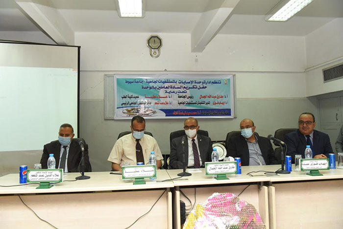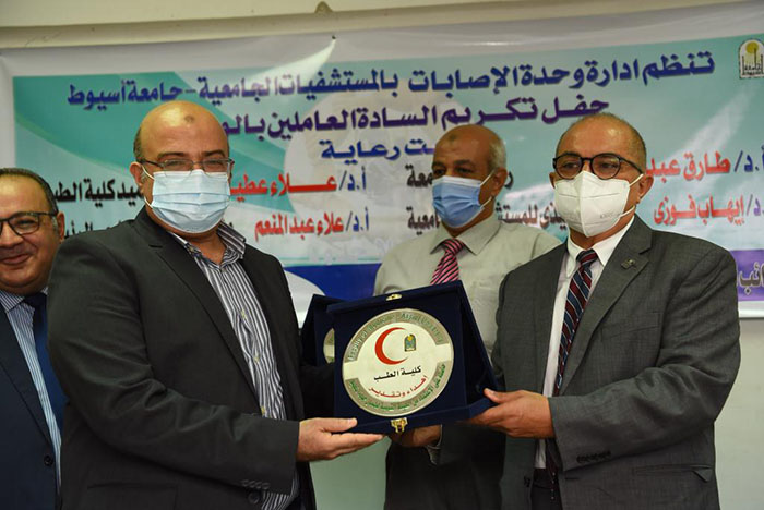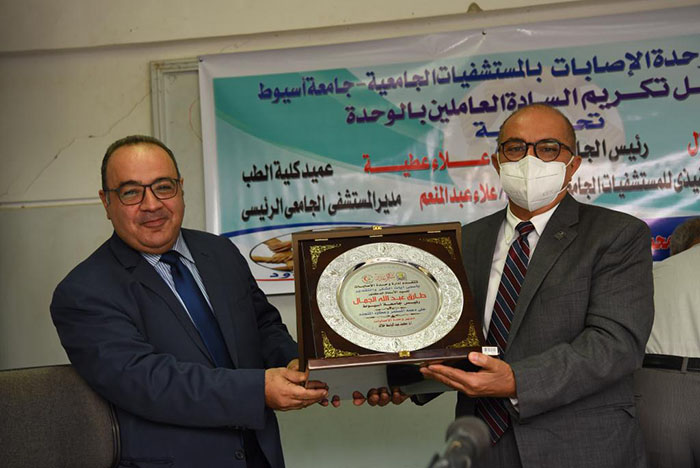 جاء ذلك خلال مشاركته في فعاليات حفل تكريم الدكتور أسامة فاروق أستاذ جراحة العظام و المدير التنفيذي لمستشفى الإصابات الجديدة و تكريم عدد من العاملين بوحدة الإصابات بالمستشفيات الجامعية و ذلك بحضور الدكتور علاء عطية عميد كلية الطب و رئيس مجلس مستشفيات أسيوط الجامعية و الدكتور إيهاب فوزي المدير التنفيذي للمستشفيات الجامعية و الدكتور علاء عبد المنعم مدير المستشفى الجامعي و الدكتور محمد عبد الباسط نائب المدير لشئون الإصابات و منظم الحفل والمستشار وليد حنفى المستشار القانونى للمستشفيات الجامعية و لفيف من الأطباء و المتخصصين في مختلف التخصصات الطبية و بمشاركة الأطقم الطبية و التمريض و العاملين بالوحدة .