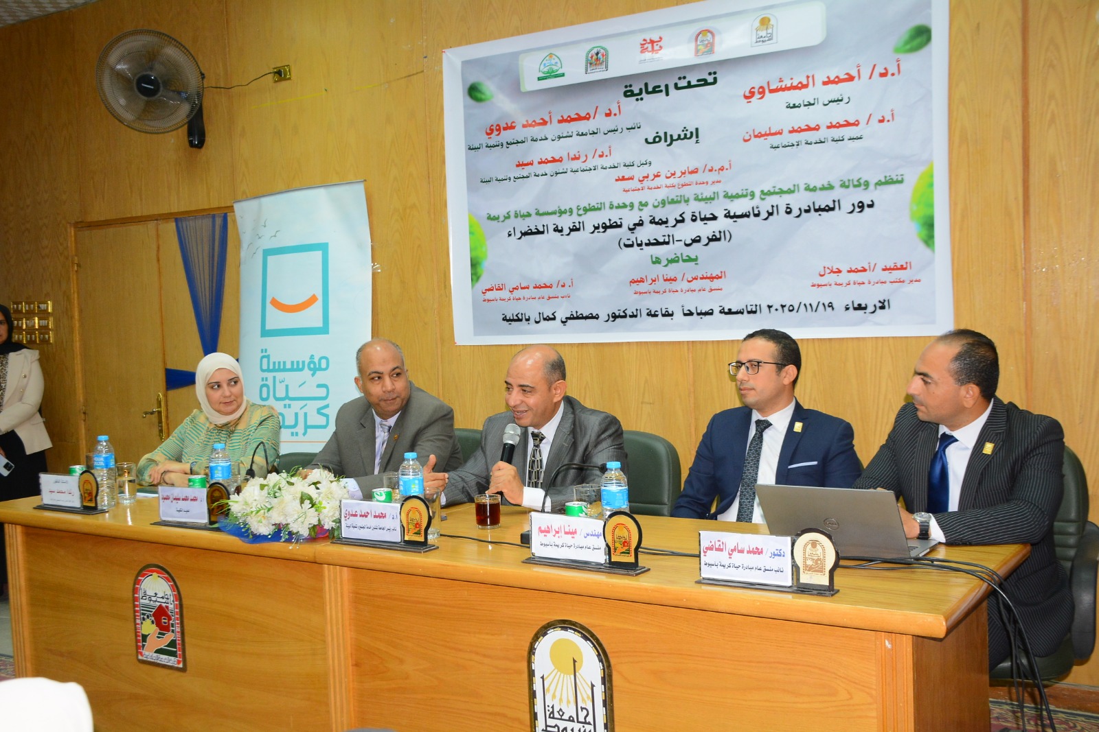 وجاءت الندوة بإشراف الدكتور محمد محمد سليمان عميد كلية الخدمة الاجتماعية، والدكتورة رندا محمد سيد وكيل الكلية لشئون خدمة المجتمع وتنمية البيئة، والدكتورة صابرين عربي سعد مدير وحدة التطوع بالكلية، وبمشاركة المهندس مينا إبراهيم منسق عام مبادرة حياة كريمة بأسيوط، والدكتور محمد سامي القاضي نائب منسق عام مبادرة حياة كريمة بالمحافظة.